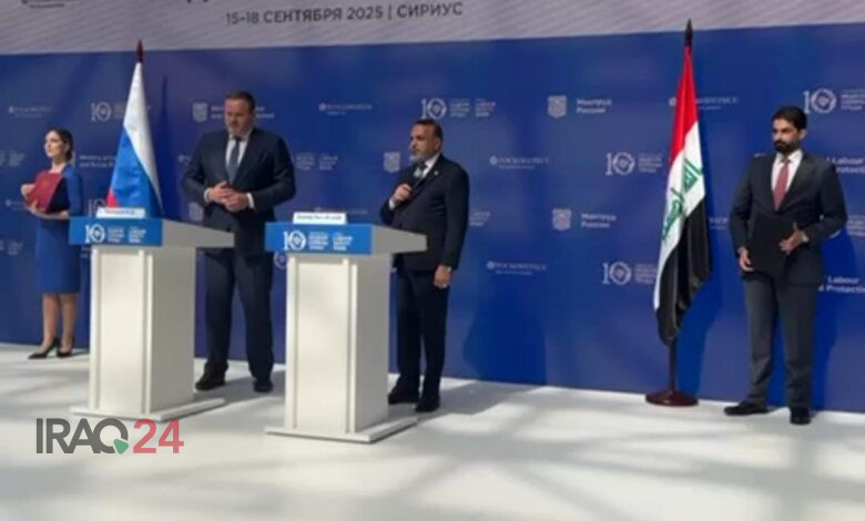 وقالت الوزارة في بيان إن “وزير العمل والشؤون الاجتماعية أحمد الأسدي وقع مذكرة تفاهم مع وزير العمل والحماية الاجتماعية في روسيا الاتحادية أنطون أوليغوفيتش كوتياكوف”.